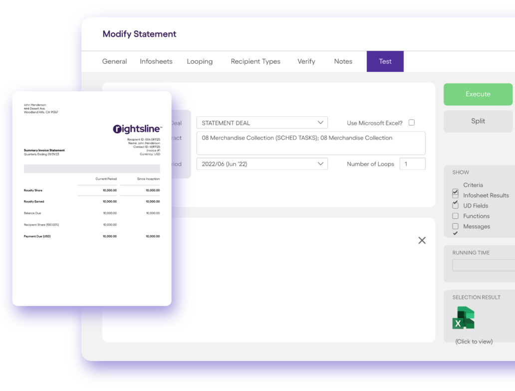 No need to buy off the rack statements. Every business has unique licensing requirements. With Rightsline, you can customize your statements based on specific contract terms. You can create your own statement designs or templates, set statement cadence, manage statement generation, and deliver your way.